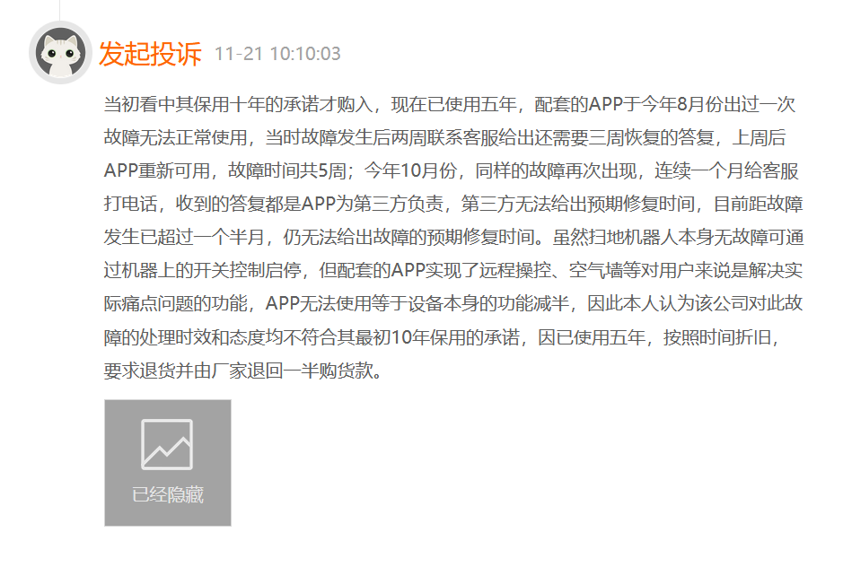 (原标题:小狗扫地机器人“烂尾”?消费者不满App失效产品变砖头)