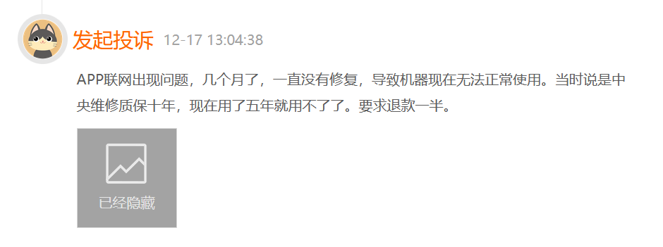 小狗机器人App无法连接使用的情况已经影响到多名用户。记者在黑猫投诉平台上注意到多起相关投诉。 投诉者周先生向记者表示,机器人连接不上App,不能识别原来设置的清扫禁区,经常会在打扫时卡在厨房、茶几等位置。他认为产品在推出时就已经做好各种成本测算(包括售后维护),小狗有责任维护好配套使用的App。 数名投诉者提到了“十年质保”这一点。有投诉者表示,当初是看中保用十年的承诺才购买小狗机器人,但App无法使用等于机器人的功能减半。他认为产品使用了五年,应当按照时间折旧处理。 小狗品牌创立于1999年,24年以来专注于吸尘器领域。据了解,小狗在2002年上市国内首款智能扫地机器人。不过,记者在小狗官方商城“智能吸尘器”类别下并未找到扫地机器人相关产品。据天猫、京东的小狗客服介绍,目前小狗已经不做扫地机器人了。个别投诉者表示这可能导致了配套App失效,因为品牌方不想再运营了。 值得一提的是,小狗曾对保修期内的产品提出“中央维修”,包括了免费(一切费用全免)、免责(人为损坏照样免费修)、用户至上(一切解释权归用户所有)。不过,小狗对于扫地机器人配套APP的维护寒了消费者的心。他们认为小狗的“烂尾”行为是置用户利益于不顾。 就小狗机器人App的配套使用问题,客服回复称目前服务器方未告知具体的恢复时间,可为受影响的用户申请一台手持有线吸尘器(HCO5 Earl)或除螨仪(MCO5 Youth),待扫地机服务器处理好,再安排取回(期间任意使用)。 就本文提及的消费投诉,消费者报道向小狗方面发送了采访函,但截至发稿时未获回复。对于小狗App无法使用的消费投诉以及后续情况,消费者报道将保持密切关注。
