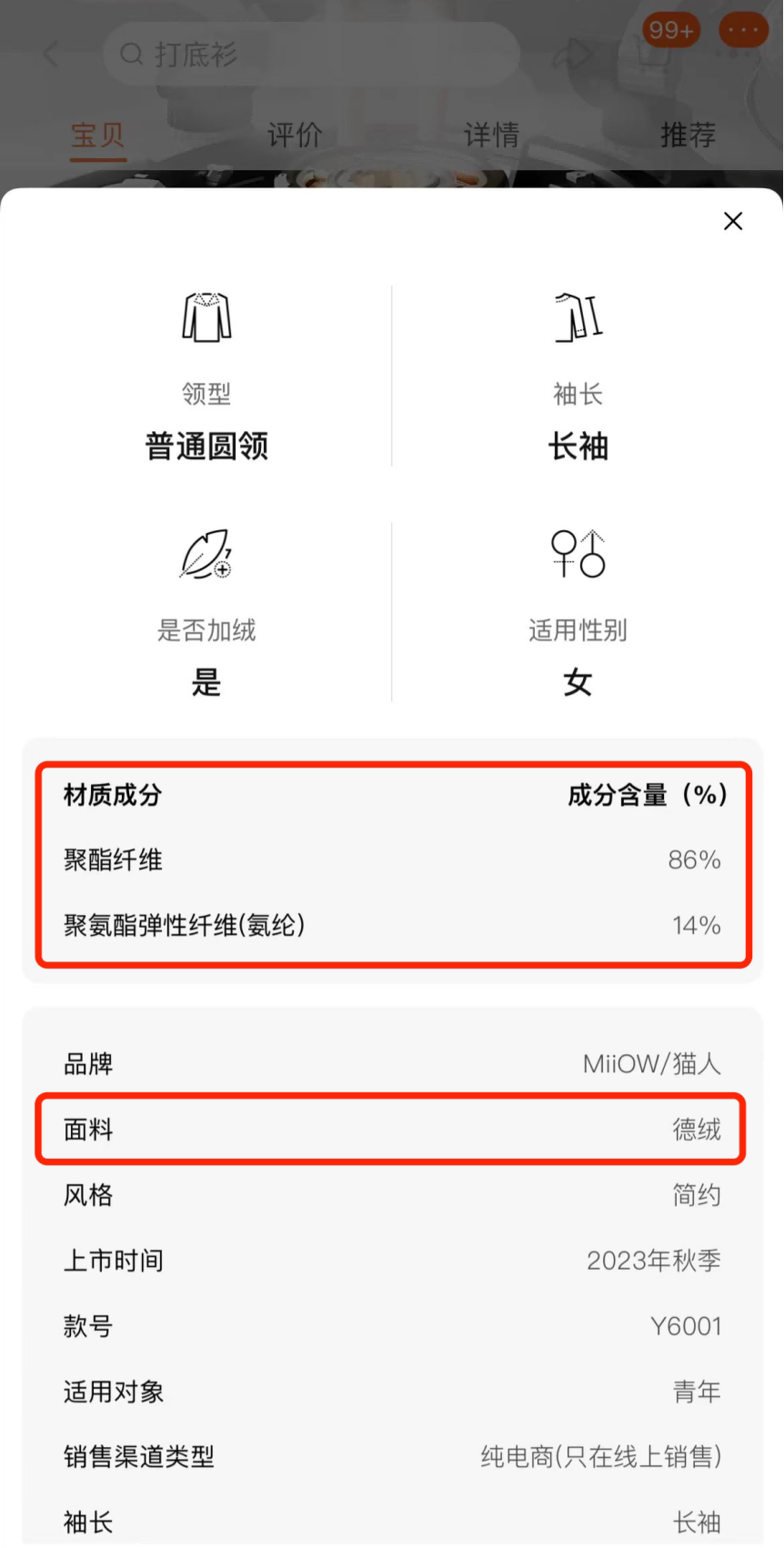 在销量排名前十的另外五个明确标明“德绒”的保暖内衣产品,其中包括了鸭鸭、南极人、猫人等知名服饰品牌,没有一个产品的面料成分表中含有“腈纶”,多是聚酯纤维(涤纶)和聚氨酯弹性纤维(氨纶)构成。